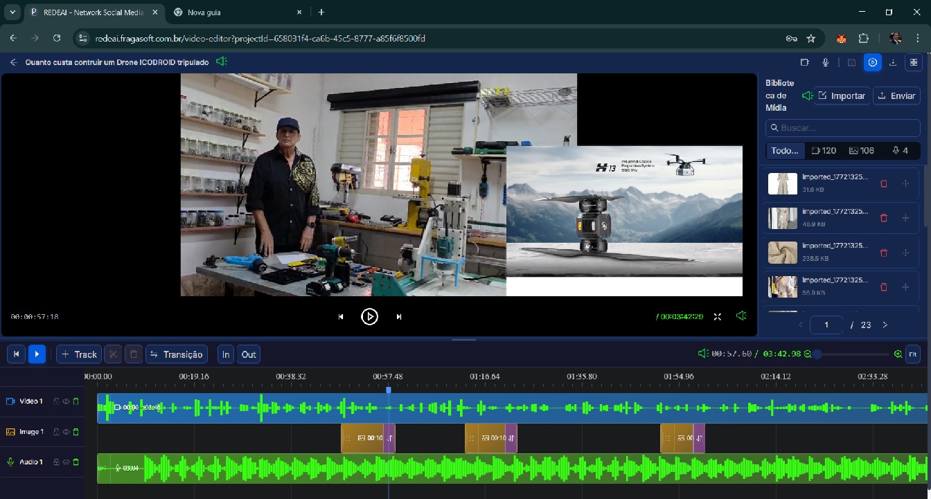 Edite vídeos diretamente na plataforma com ferramentas avançadas e IA para aprimorar qualidade de imagem, áudio e voz.
